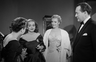 Karen introduces Eve to Margo, and Margo looks quite flattered. Though, being Margo, the superstar, so confident of her own hold over the world of theatre, she also seems a little amused. A little patronizing, perhaps, to the starry-eyed girl who is so besotted with her, Margo. There are thousands of fans, but few, it appears, so devoted as Eve.
