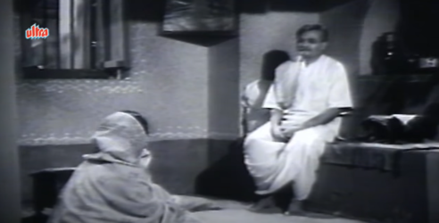 Radha has a houseful of servants, who seem to spend most of their time gossiping amongst themselves (one of these, the maid Monghi, is an old favourite from Hindi cinema: the sweet-faced Dulari). While Radha excuses herself and Ravi is waiting by himself, he happens to overhear a conversation between two of the servants: Sethji (that is, Radha’s father), since he has all that wealth and no offspring except Radha, will be happiest to find a son-in-law who has nobody else in the world. An orphan, on whom Sethji can bestow not just his daughter but everything else: his property, his business, all. A man with no other liabilities, no duties towards anybody else.