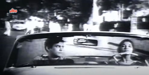 Ravi leaves for the city, and when he arrives there, is met by old classmate, and obviously old sweetheart too, Radha (Sarita Khatau, later Sarita Joshi). Radha has come in her car to pick Ravi up, and as she drives him away from the bus station, she gives him some good news: she has spoken to her father (?) to give Ravi a job. Right now, she is taking Ravi to their home, where he can relax a while.