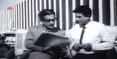 Thanks to Radha’s recommendation (and the fact that her fond father is happy to do anything to please his daughter), Ravi gets a job at the factory her father owns. Radha insists that Ravi stay with them, and her father is equally happy to agree. Things are well on the way to working out as Ravi wants: he’s soon earning well, and his romance with Radha is progressing, with lots of singing in pretty locales and such like.