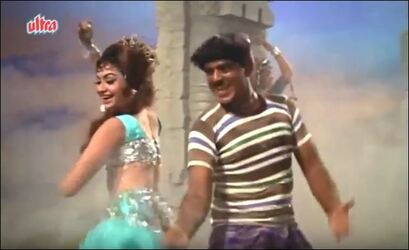 7. Maine kaha thha aana Sunday ko (Ustaadon ke Ustaad, 1963): With Johnny Walker. Yes, there will be those who will say that Johnny Walker was not a star, but for me, he certainly was. Not only did he act as the leading man in several films, even in the many, many films where he was ‘just’ a comedian, he was often not just a comedian. There has never been another comic actor in Hindi cinema as likeable as Johnny Walker—and film makers probably realized it too. So Johnny Walker, when in a film, invariably had at least one song picturized on him. He’s done song and dance sequences with just about every female dancer around, and in several instances with Helen. Here, they team up for a delightful ‘performance’ song the tune of which is obviously lifted from Never on a Sunday. Helen is gorgeous, and Johnny Walker is, as usual, so much fun.