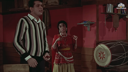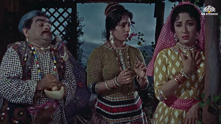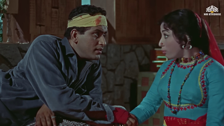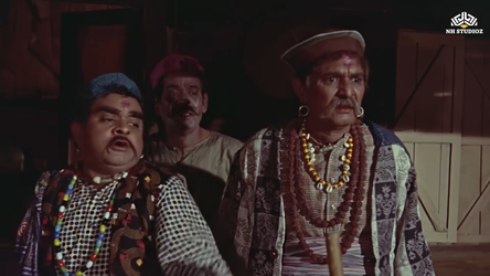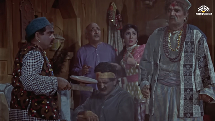 The next morning, some of the women from a nearby village discover the unconscious Sunil. Phulwa (Mala Sinha) is very concerned and has her friends help her take Sunil to her home where she lives with her uncle Dayal (David), though Phulwa doesn’t know Dayal is her uncle, not her father. Dayal and Phulwa get the local jhaad-phoonkwaala, a charlatan named Ghogar Baba (Kanhaiyalal), to come and work his magic on Sunil.