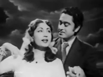 7. Raahi matwaale (Waaris, 1954): This is a song that also appeared on another multiple version songs list: as a song which had a duet version as well as a solo. Rahi matwaale, composed by Anil Biswas (and based, quite obviously, on Rabindranath Tagore’s beautiful Ore grihobashi) is probably best known in the cheerful version in which it first appears in Waaris. Talat Mahmood’s character, a passenger on a train, breaks into song—and is joined by a stowaway (Suraiya, briefly in drag but abandoning that pretence quickly enough). The two of them, singing playback for themselves, are wonderful here: such an ebullient, lovely song.