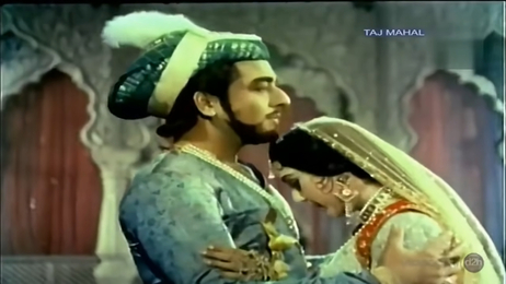 And this one (sung by Lata and Rafi), actually appears not twice, but thrice, and all three times as a duet. The first time, the most cheerful version, is from the days of heady young love, when the prince and his beloved are first serenading each other. The second, tragic, version is from when Shahjahan, his hair turned grey overnight out of grief over the death of his Mumtaz Mahal, cries out to her, begging her to return—and she does, a spirit whose voice echoes their song. Lastly, the song plays as a background song when Shahjahan finally dies: against a backdrop of the Taj Mahal, he is finally reunited with Mumtaz, their voices singing of eternal love.