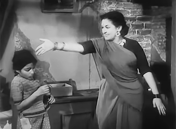 In the meantime, Radha’s fellow-workers on the assembly line at Din Dayal Crockery have discovered that she—who had joined the place claiming to be unmarried—has a daughter. They label her a fallen woman and give the manager an ultimatum: get rid of Radha or they will leave, en masse. He has no choice, and Radha ends up having to leave.