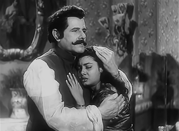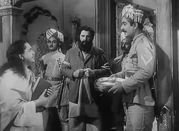 In the meantime, Kundan’s long-lost niece Radha has grown up (now Nimmi) and is married to Gopal (Pran), who, unknown to her, is a baddie. Gopal gets some of his unscrupulous friends to come to his home pretending to be creditors clamouring for their debts to be paid. Gopal and these fellows pretend to fight, with one of them threatening Gopal: if he has nothing else, he should pawn his wife’s jewellery.