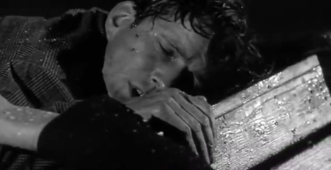 But, to get down to the film itself, which begins with a murder. A man, his face saggy and jowly, walks down a deserted road in the night and enters a building. He goes to the lift and wedges a heavy book (Baedeker’s Great Britain) in at the bottom, so that the lift can’t close.