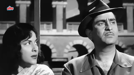 While at the phone booth, Kammo had a run-in with a man who seemed to her to be hogging the phone. This is Sagar (Raj Kapoor), a journalist who works for a newspaper named Naya Sansaar; Sagar had been talking to his editor (Raj Mehra) in Bangalore and trying to wheedle him into giving Sagar another chance.
