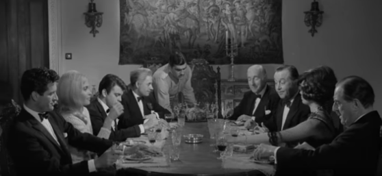 It’s all quite light-hearted right now as the eight guests unwind at dinner and get to know each other. One person is a celebrity and therefore known, at least by face and work, to the others: the famous actress Ilona Bergen (Daliah Lavi).
