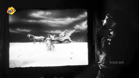 … which begins with a song, in the land of Sanga Dev, a rather tyrannical deity whom the local people worship. Sanga Dev seems to be pretty bloodthirsty, as we (and the aforementioned pardesi aviator) discover: if he is displeased about something, he wreaks havoc on the land, and will then be appeased only by a human sacrifice.