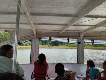 As much time as she spent admiring the wildlife outside the boat, the LO spent glaring at two other little girls (well, not so very little, but definitely younger than the LO) who had also come along on the boat, as part of a rather large and fairly noisy group. The girls spotted a spider on board the boat, and after that, there was much shrieking and squealing every time they thought it had come near them. The LO was most disapproving. “Junglee log” was how she described them to me.