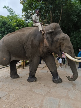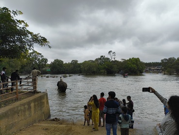I must admit that to me this camp wasn’t very inspiring. It was all a little too commercial, the Instagrammable entrance obviously geared for tourists. The actual work done by the Forest Department may be for the welfare of the elephants, but all I could see were the heavy chains on the elephants’ ankles, the thick-logged, cramped kraal in which I saw an elephant standing, and the fact that the place was milling with tourists pushing and shoving to take photos with the elephants in the backdrop.