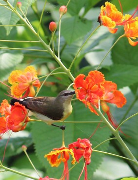 From Namdroling, it took us a little over an hour to get to our destination, a resort named Fireflies Kabini, just next to Nagarhole. Fireflies Kabini is situated on the bank of the Kabini River (which flows through Nagarhole), and is a lovely, verdant property. Each ‘room’ is an independent cabin, with its own little verandah: we ended up spending a lot of our time sitting here, peering into the trees and flowering shrubs around, watching for birds. We saw many of them, from the small pale-billed flowerpecker and purple-rumped sunbird to the ubiquitous red-whiskered bulbul.