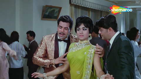 But the film had some great songs (by Shankar Jaikishan), the better-known ones (Main kahin kavi na ban jaaoon and Dekha hai teri aankhon mein pyaar hi pyaar) solos picturized on Dharmendra. And there was this very peppy dance number, a duet sung by Dharmendra (who’s gate-crashed this party in disguise) and Vyjyanthimala, who’s huffy and is doing her best to convince him she has eyes only for another man (Manmohan). Dharmendra wasn’t a great dancer, but he looks like he’s having a lot of fun here.
