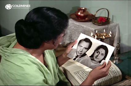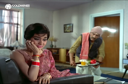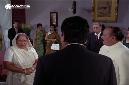 Everything is tickety-boo. They’re singing songs, mooning about the tea gardens, and—with the blessings of Kanchan’s parents and Ravi’s very grateful mother—now preparing to get married. At the engagement party, people have come from far and wide, among them an old auntie of Kanchan’s (Leela Misra). As soon as this old lady is introduced to Ravi’s mother, she looks puzzled, and then shocked. This woman is Jamuna Devi, right? And she belongs to Ambala, right? And she became an unwed mother, and fled town to avoid the shame…!