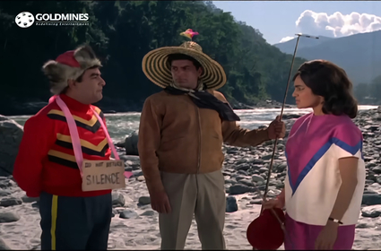 To cut a long story short, much mayhem ensues, as Ravi tries to pretend to be two men, and Kanchan falls more and more in love with ‘Ravi’ while wanting to make sure ‘Prakash’ gets his just deserts. Of course, the farce doesn’t last long, and when she discovers the truth, Kanchan teaches Ravi a lesson. He ends up traipsing through the chilly Darjeeling air clad only in a wicker basket [in the aftermath of this song]…