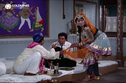 Ravi washes up in Ambala, where he’s busy drowning his sorrows in drink when a fellow tippler takes pity on him and drags him off to a kotha. Here, the tawaif is in the middle of her dance when her baby starts crying from an adjacent room. She ignores it at first, but increasingly upset by her child’s distress, begs to be excused so that she can feed her baby. Ravi is understanding but the other man starts abusing the woman: “a woman who probably doesn’t even know the name of her baby’s father”—