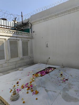 Aurangzeb’s tomb is a far cry from the magnificent mausoleums of much of his clan. According to his wishes for a simple grave open to the skies, there’s no structure here, just the grave covered with a large sheet and strewn with flowers. The marble floor and the pierced marble screen (jaali) around the tomb were added by the viceroy Lord Curzon at the turn of the century.