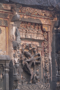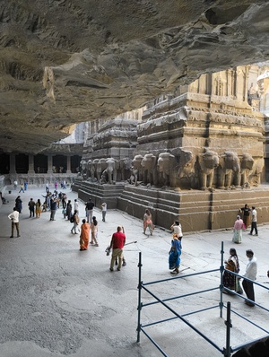 We began by visiting the Kailasa Temple, which is the world’s largest monolithic structure, and stupendous: it is carved out a single block of stone, and that by scooping the rock out of the hillside. The temple—not one structure, but several interconnected ones, spreading across different spaces and different levels, all surrounded by a gallery—is huge, and all of it exquisitely carved (though sadly prone to erosion, since most of it is open to the elements).