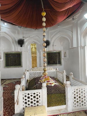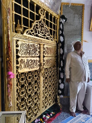 Within the same complex are other tombs as well: those of Aurangzeb’s son Azam Shah and his wife; and of course, of Sheikh Zainuddin. Near the tomb of Sheikh Zainuddin is a space, shielded by a gilded screen, behind which a garment of the Prophet Mohammad is kept; this is taken out for display only once a year, but one of the local caretakers told us about it.