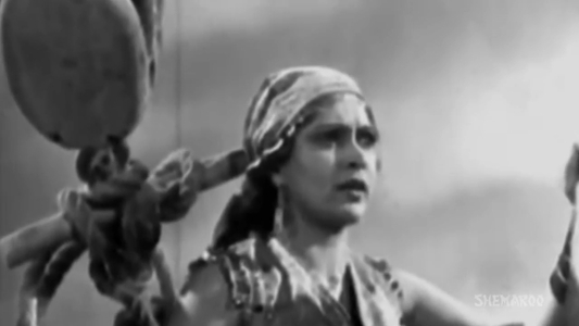 Another person whose acting stands out is Chandramohan. I’ve seen him before in a couple of films (Roti, Humayun) and have always been impressed by his acting. Here, too, as Durjaya, Chandramohan is mesmerizing. Seeing him, I couldn’t help but wonder what his career might have been like if he hadn’t died so young (just 42 when he died in 1949): would he have been as familiar to later generations of film-goers as acclaimed thespians like Dilip Kumar and Sanjeev Kumar?