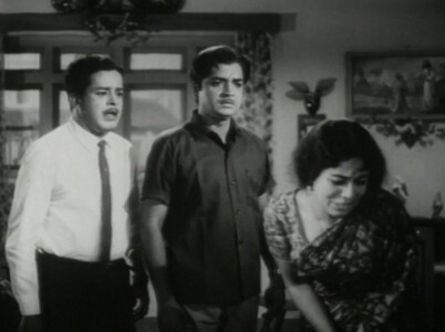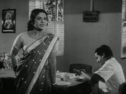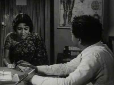 In the midst of this conversation, who should turn up but Mohan? He is ushered in by Dr Thomas’s wife, the flighty socialite Galy (Sukumari), who is impatient with her husband’s single-minded devotion to his research into leprosy. Mohan, on learning of Sarojam’s condition, is of course shocked. And he immediately agrees that yes, the wedding must be put off until she is well.