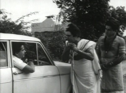 The discovery of Sarojam’s disease has many repercussions. She comes to live in the leprosy patients’ colony, which is fenced in with barbed wire, and the gloomy despair of which is enough to drive Sarojam to despair too. Meanwhile, her brother Sadanandan (Madhu) has arrived in town, all unaware of this latest development. When he discovers what has happened, Sadanandan comes to the colony, bringing Sarojam’s wedding sari with him…
