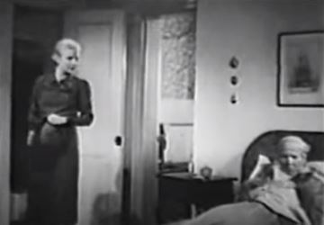 The Grohmanns show the guests to their rooms. None of these guests have ever met each other, though from the curious looks some of them bestow on the others, it’s obvious they’re at least interested. The American Hugh Lombard (Hugh O’Brian) and the host’s newly-appointed secretary, Ann Clyde (Shirley Eaton) seem, for instance, to like what they see.
