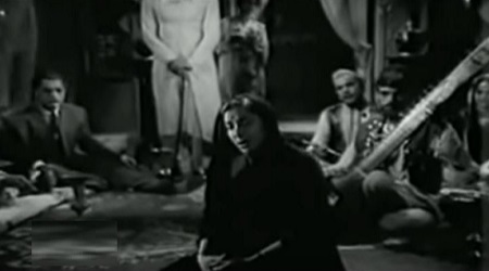 But there is the occasional naachne-gaanewaali who doesn’t dance. She only sits, or, at the most, stands up a bit and languidly moves about. No proper dancing. Not, I think, because she realizes that it’s well-nigh impossible to do both at the same time or that she’s conserving her energy, but perhaps because that’s the filmmaker’s way of showing that she is relatively pure. This invariably happens in cases where the heroine is the naachnewaali, sitting in a kotha or other similar house of ill-repute and forced to use her beautiful voice to earn her living. Only her voice, mind you. No more.
