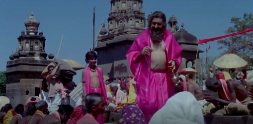 The story, based on Mahashweta Devi’s Laayli Aashmaaner Aaina, begins in Banaras of the 19th century (the riverfront, sadly, looks very mid-20th century). Bhawani Prasad (Jayant), bearded and seemingly benevolent, walks back from the temple after pooja. At his heels follows his grandson Kundan (?). Bhawani Prasad is much venerated, and the way he hands out alms to the poor and blesses those bowing before him, one might be forgiven for thinking him a good man.